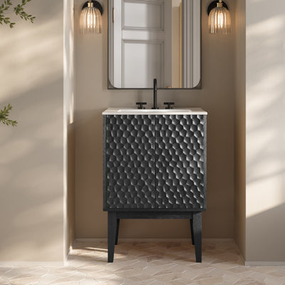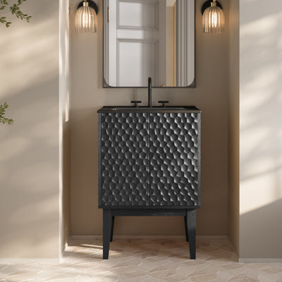 Bosse 24" Freestanding Bathroom Vanity in Black Oak with Black Sink Top