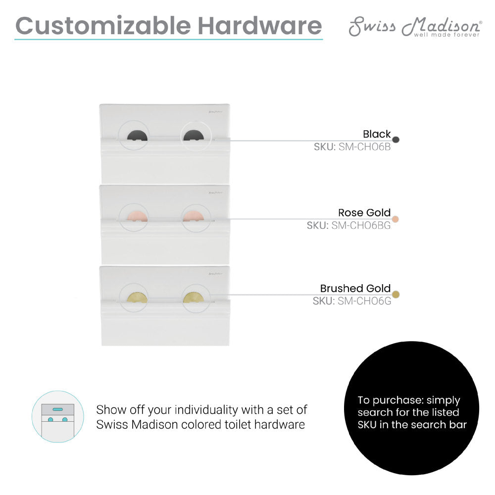 • Dual Flush: The buttons for dual flush allow you to choose between a low 0.8 GPF light flush or a high 1.6 GPF full flush
