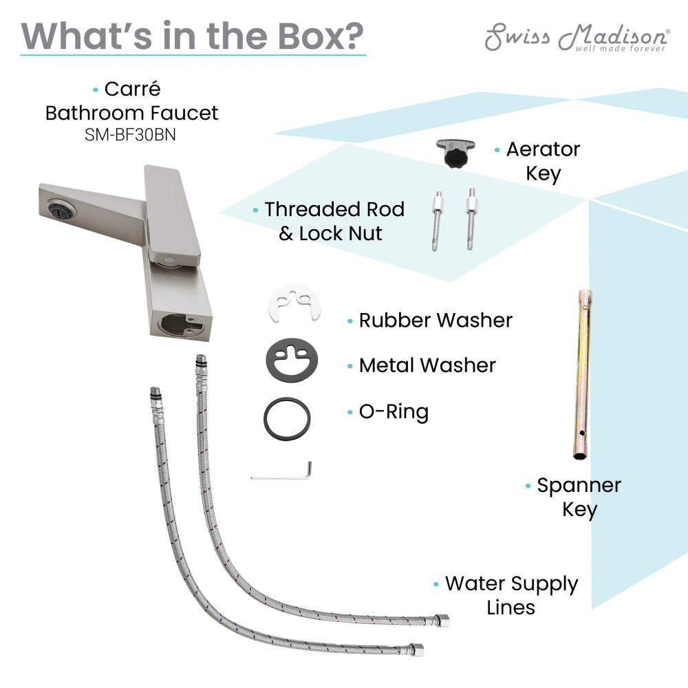 Embrace geometric balance with the Carre collection, where clean lines and modern design principles take center stage. Discover simplicity and sophistication in one with our single-handle faucets, offering smooth operation and contemporary design. Offered in brushed nickel.