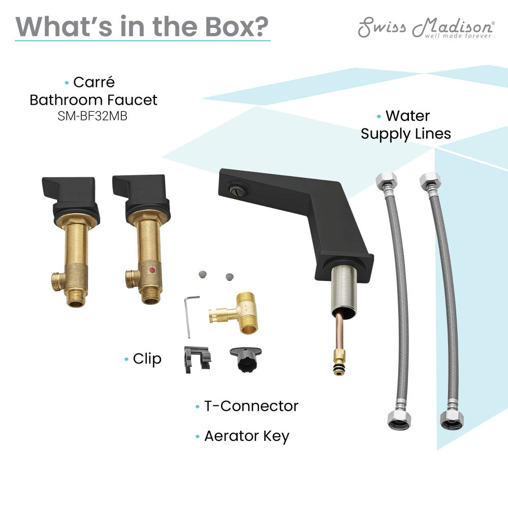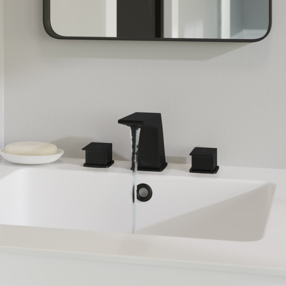 Embrace geometric balance with the Carre collection, where clean lines and modern design principles take center stage. Redefine elegance in your bathroom with our widespread faucets with a timeless design and dual control. Offered in black with a matte finish.