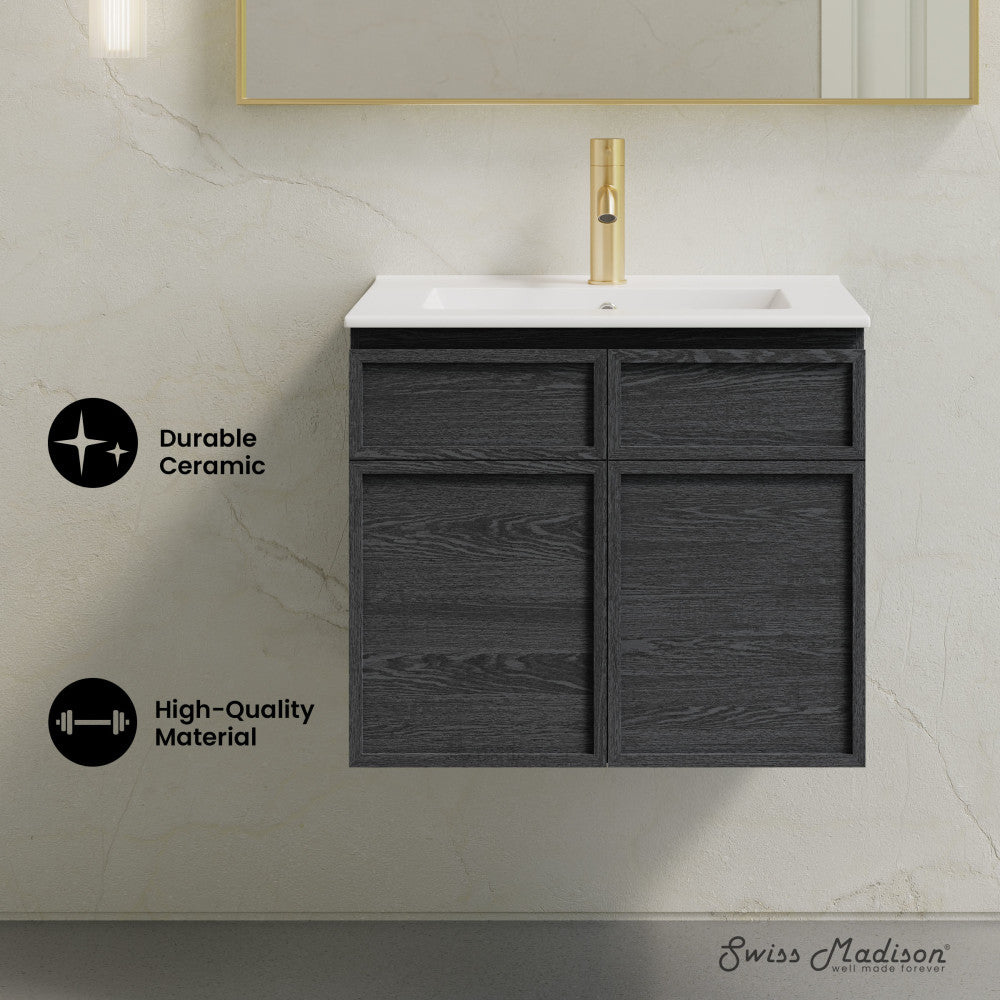 St. Tropez 24" Wall-Mounted Bathroom Vanity in Black Oak with Sink Top
