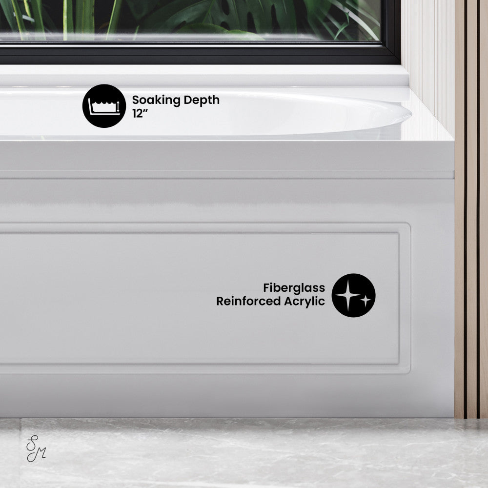 - Built-in apron: Bathtubs with built-in aprons streamline installation with a preinstalled front avoiding the need for tile.