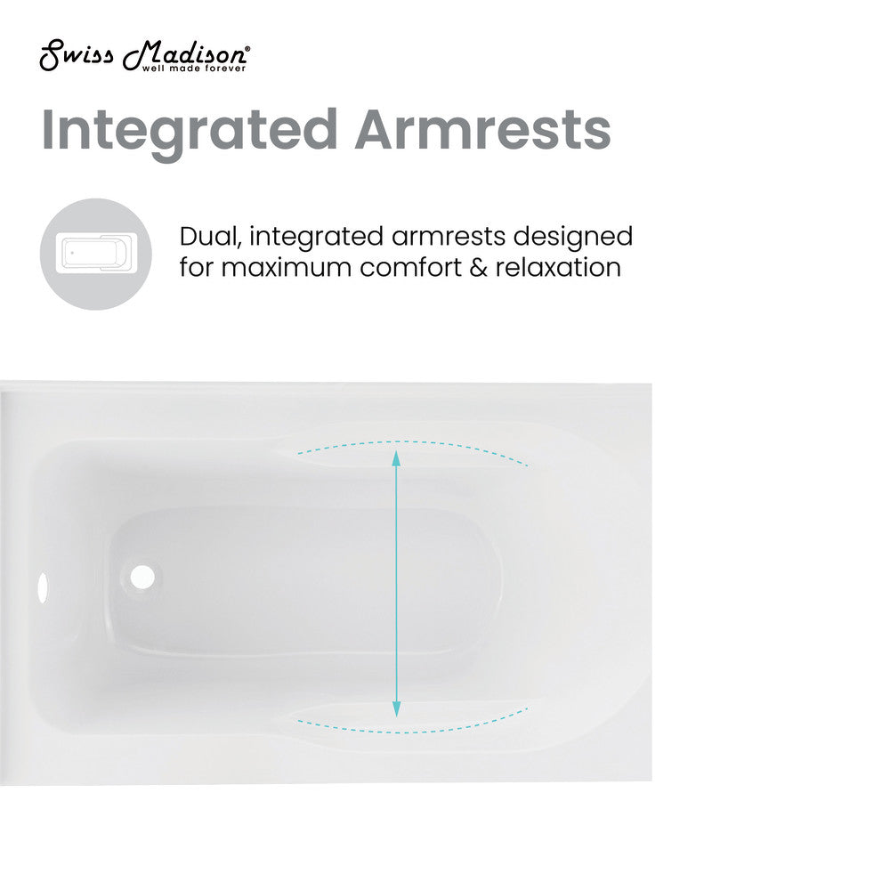 • Integrated armrest: Bathtubs featuring integrated armrests offer comfortable support, enhanced stability, and ease of use.