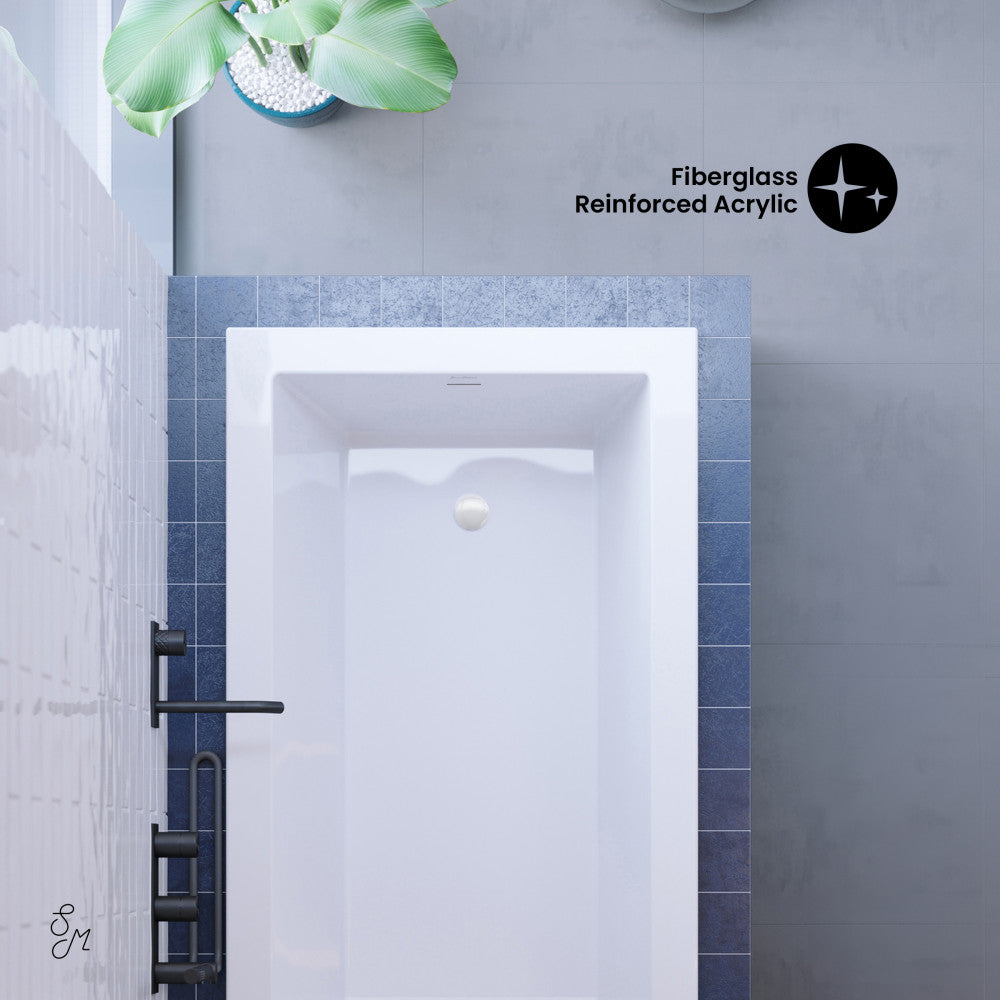 Voltaire 60 x 30 Reversible Drain Soaking Drop-in Bathtub in Glossy White with Integrated Overflow, Drain Included