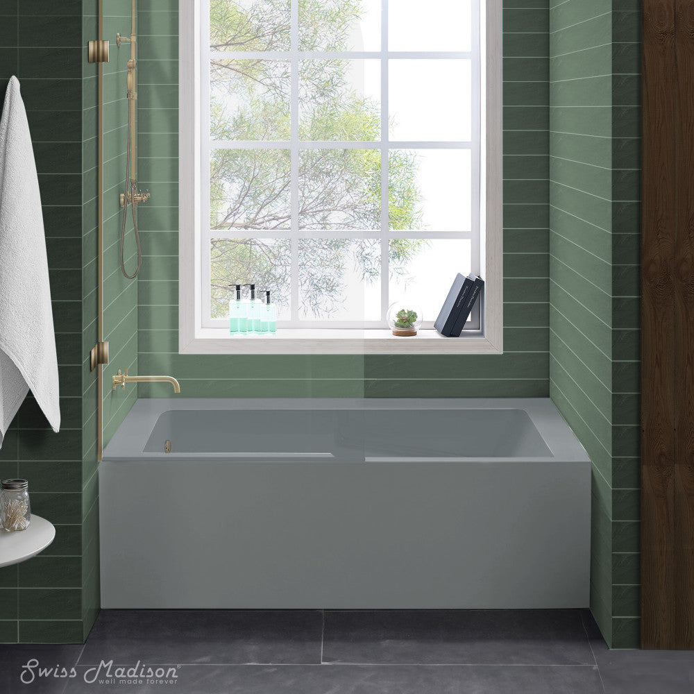 Voltaire 60" x 32" Left-Hand Drain Alcove Bathtub with Apron and Armrest in Matte Gray