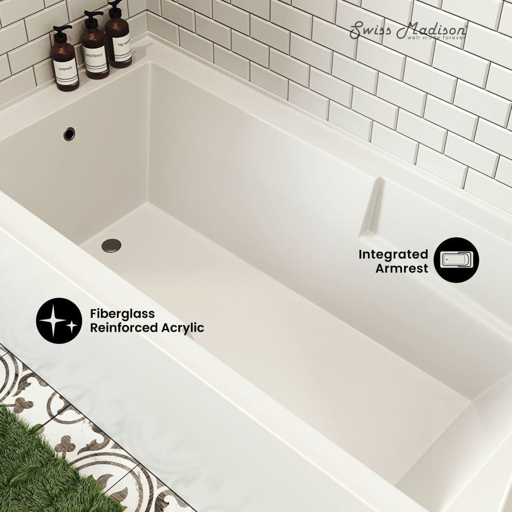 • Built-in apron: Bathtubs with built-in aprons streamline installation with a preinstalled front avoiding the need for tile.