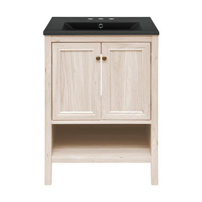 Chateau 24" Freestanding Bathroom Vanity in White Oak with Black 3-Hole Centerset Sink Top