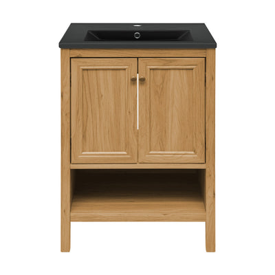 Chateau 24" Freestanding Bathroom Vanity in Golden Oak with Black 3-Hole Centerset Sink Top