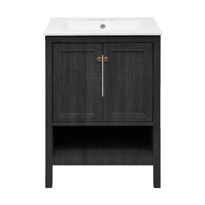 Chateau 24" Freestanding Bathroom Vanity in Black Oak with 3-Hole Centerset Sink Top