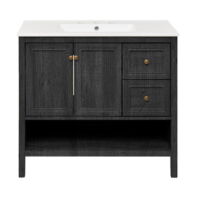 Chateau 36" Freestanding Bathroom Vanity in Black Oak with 3-Hole Widespread Sink Top
