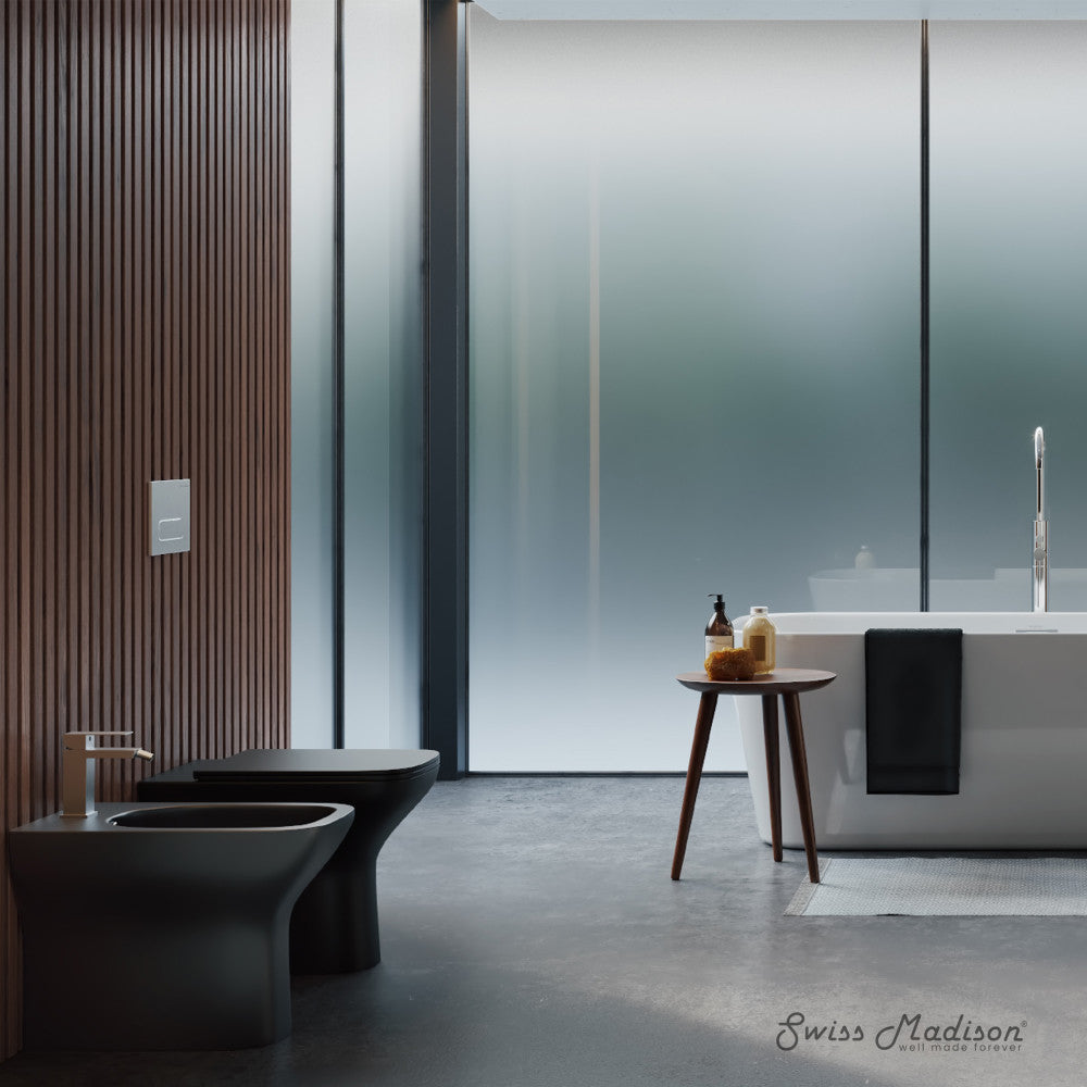 Embrace geometric balance with the Carre collection, where clean lines and modern design principles take center stage. Embrace a tradition of refinement and hygiene with our classic bidet, effortlessly fusing vintage allure with contemporary functionality. Offered in black with a matte finish.