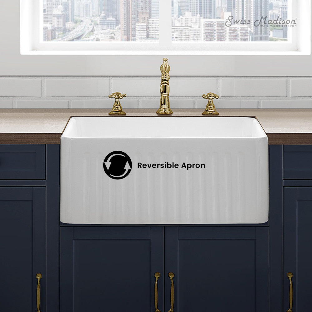 - Reversible Apron: Designed with a fluted textured side and a smooth flat side so you can decide how you want to install based on your aesthtic preference.
