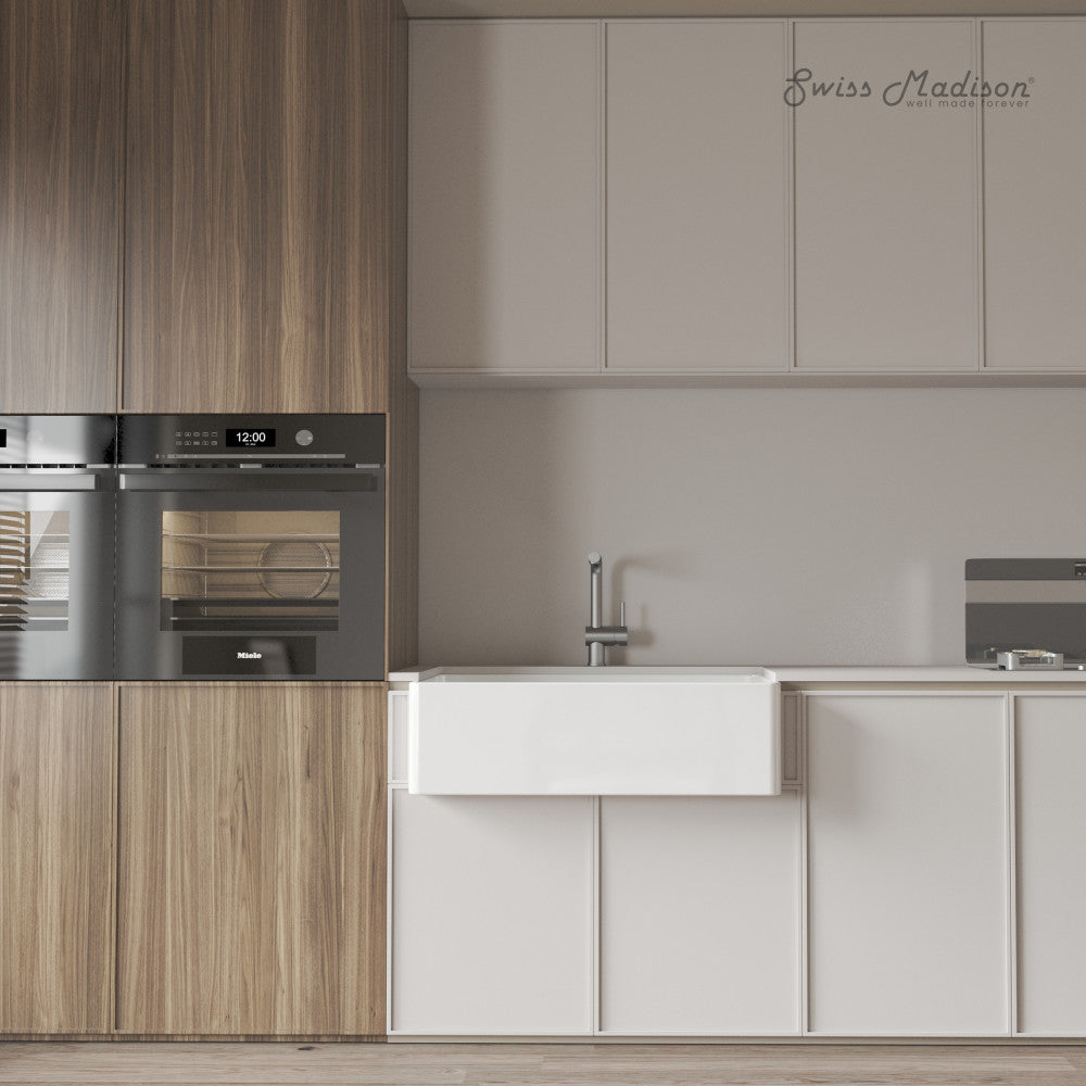Discover refined luxury in the Elegance collection, where opulent details and sophisticated designs redefine interiors. Infuse rustic charm and modern convenience into your kitchen with our farmhouse sinks, blending traditional appeal with contemporary utility. Offered in white with a glossy finish.