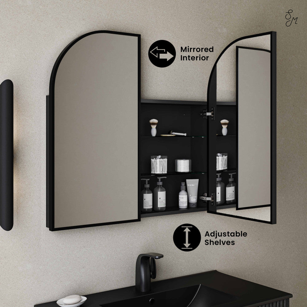 Porte 32 x 31 Arched Recessed/Wall Mount Medicine Cabinet with Mirror in Black