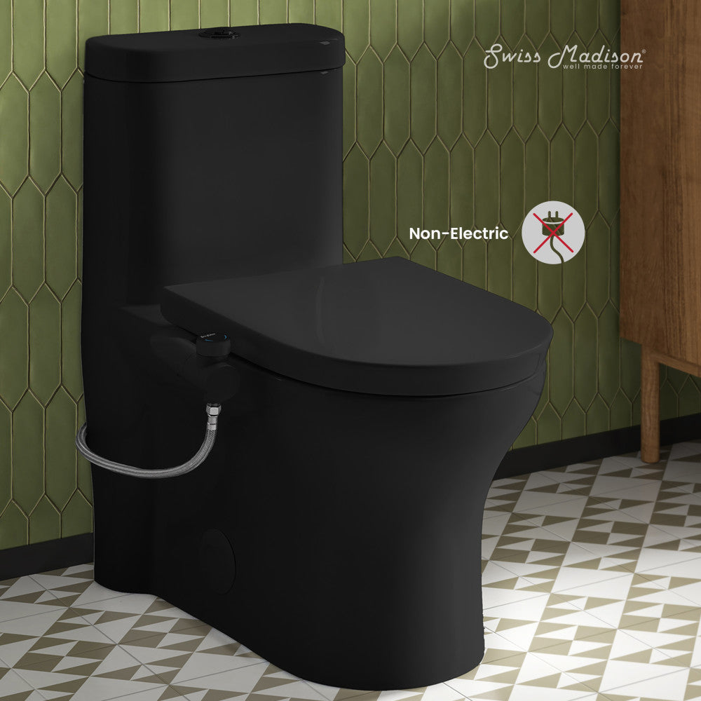 Aqua Non-Electric Bidet Toilet Attachment in Matte Black with Black Knob
