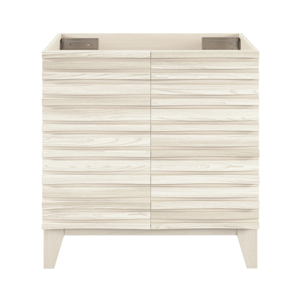 Immerse yourself in the gentle flow of design with the Cascade collection, where fluid lines and captivating forms create an atmosphere of tranquil beauty. Tailor your bathroom to perfection with our cabinets-only vanities, offering customizable vanity top solutions to integrate with your design vision. Offered in white oak.