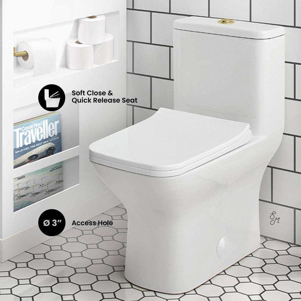Carre One Piece Square Toilet Dual Flush, Brushed Gold Hardware 1.1/1.6 gpf