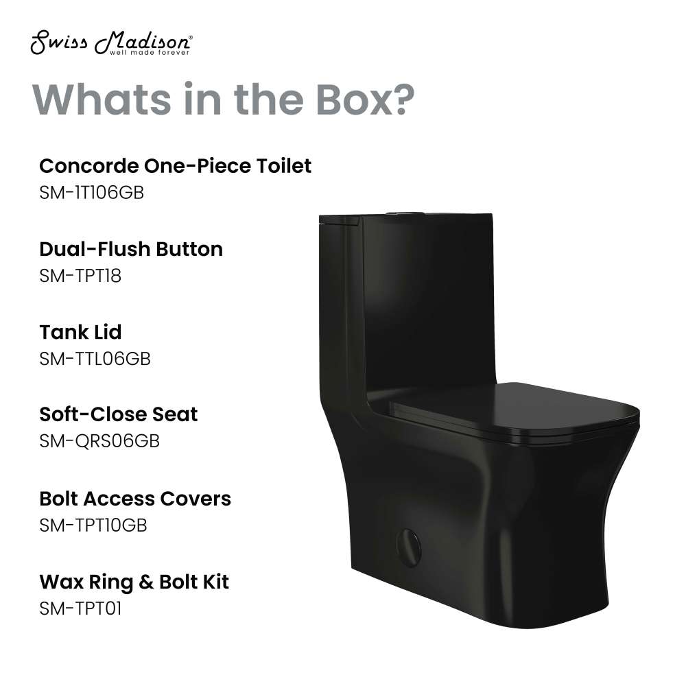 Discover the allure of modern opulence with the Concorde collection, where sleek designs and luxurious materials evoke a sense of opulence. Redefine your bathroom with our one-piece toilet, combining seamless design and functionality for a truly modern upgrade. Offered in black with a glossy finish.
