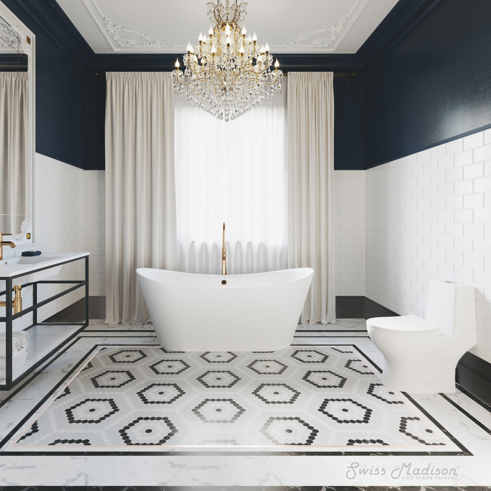 • Fully Glazed and Skirted Trapway: The skirted trapway offers hidden plumbing creating an elevated and luxurious design with a smooth finish for easy cleaning. The fully glazed trapway prevents clogs and keeps water flowing freely.