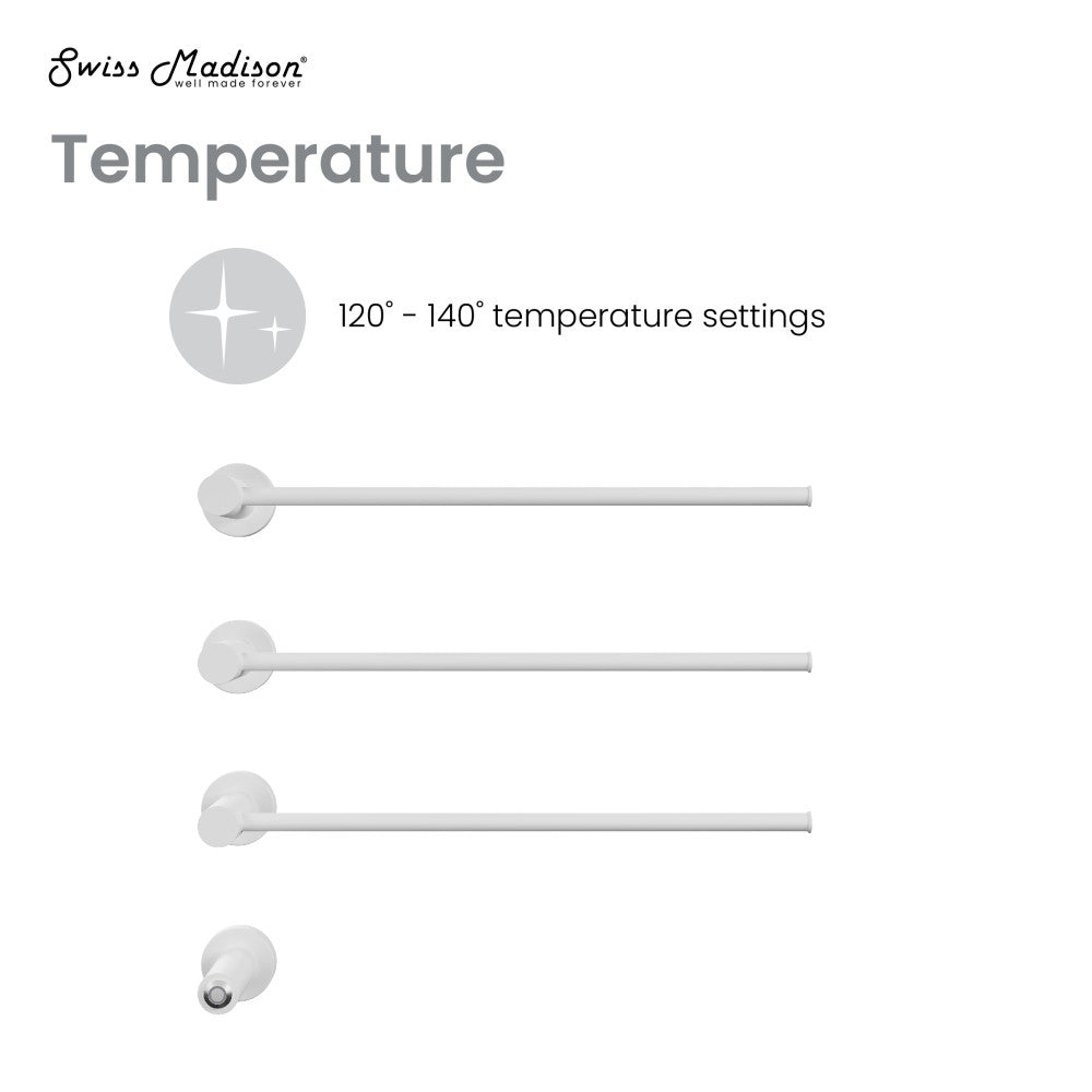 Discover the radiant elegance of the Claire collection, where ethereal designs elevate the ambiance of any setting. Indulge in the luxury of toasty towels with our sleek towel warmers adding a touch of comfort and sophistication to your bathroom experience. Offered in white with a matte finish.