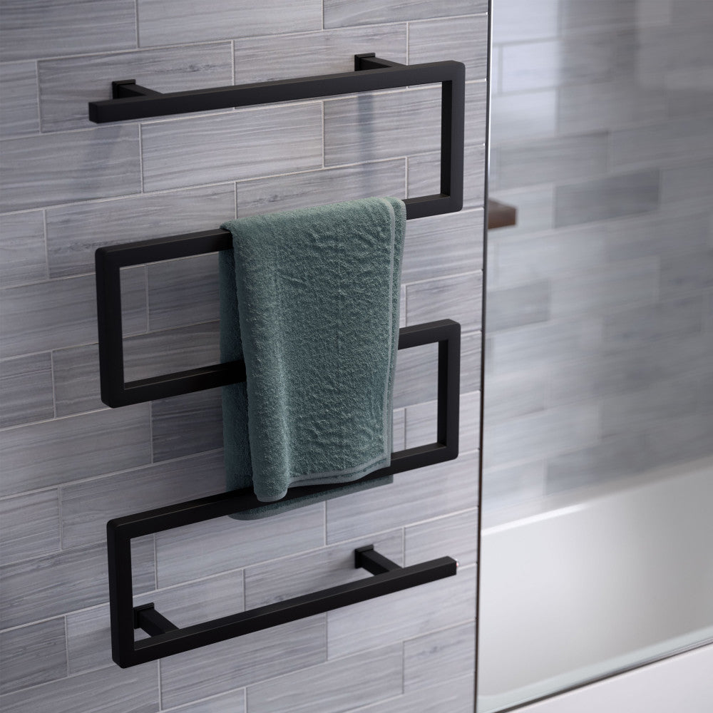 Embrace timeless elegance with the Voltaire collection, fusing classic charm with contemporary comfort. Indulge in the luxury of toasty towels with our sleek towel warmers adding a touch of comfort and sophistication to your bathroom experience. Offered in black with a matte finish.