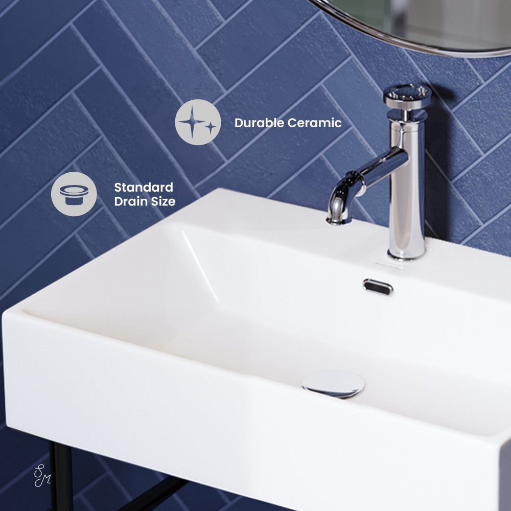 • Overflow: Equipped with an overflow that offers easy installation, spill prevention, and space-saving properties.