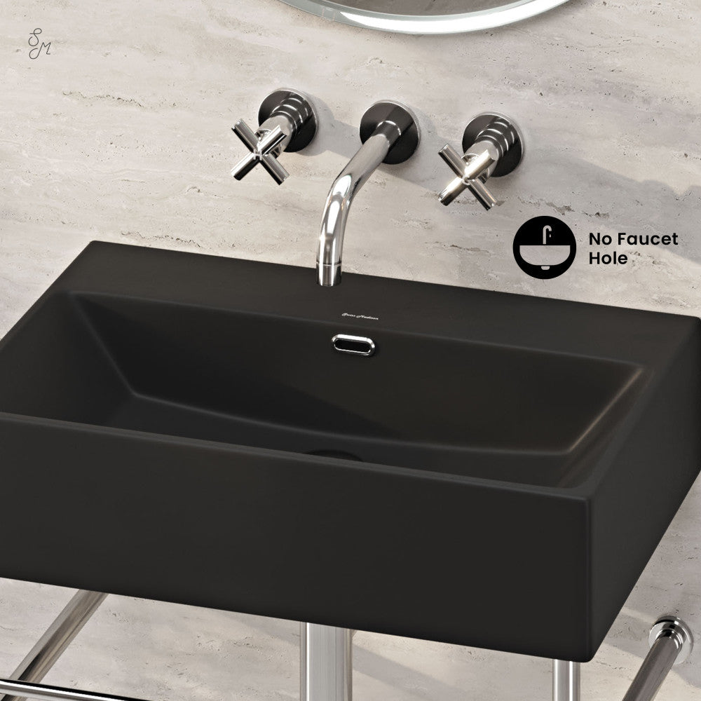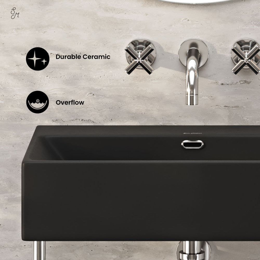Claire 24" Rectangle Matte Black Zero Hole Console Sink with Polished Chrome Legs