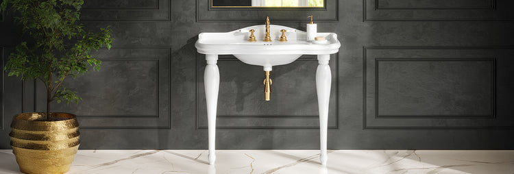 Console sinks feature open-frame designs that create a light and airy appearance.