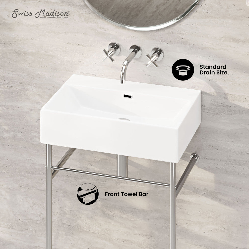 Claire 24" Rectangle Zero Hole Console Sink with Polished Chrome Legs