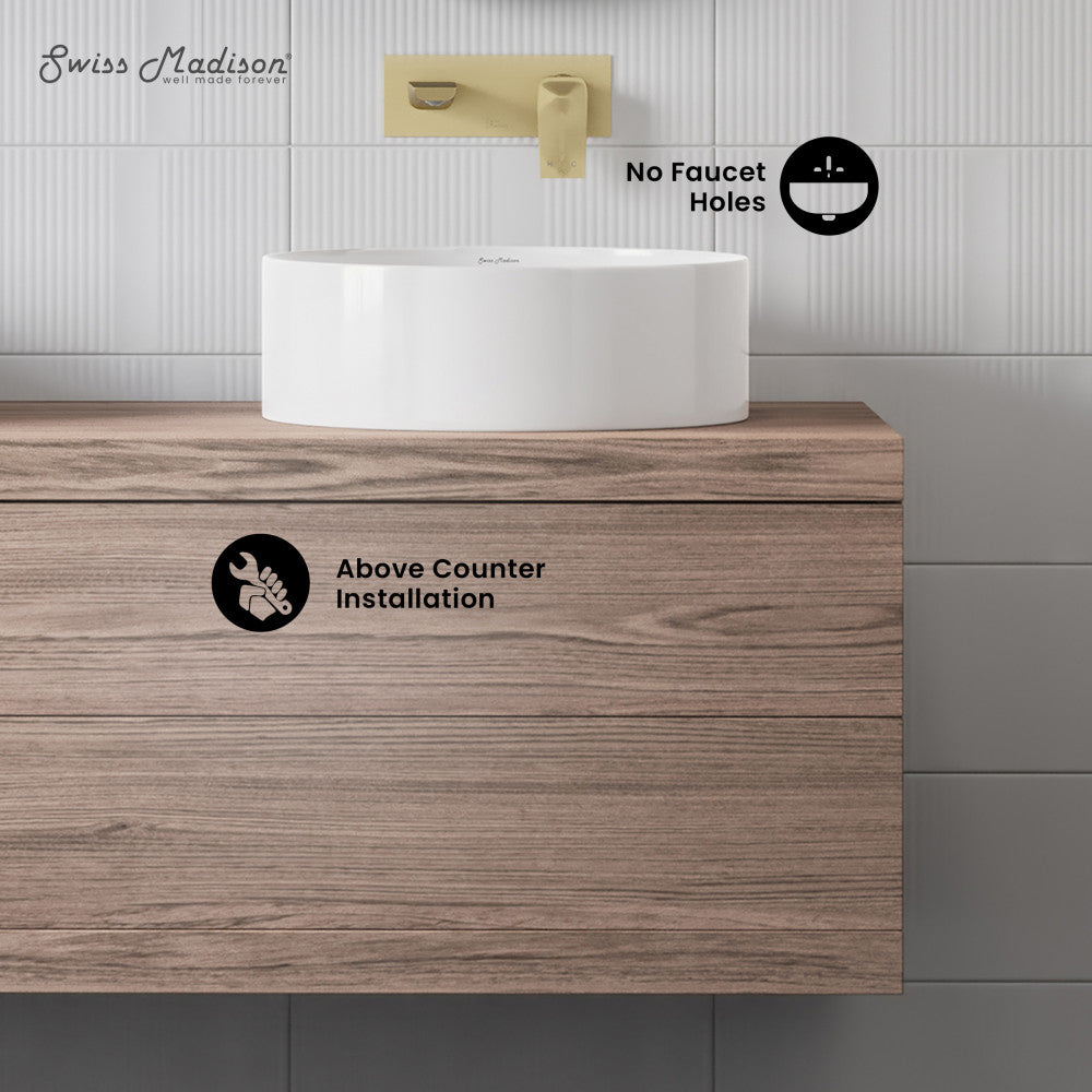 • Above-Counter Installation: A vessel sink sits above the counter top for an eye catching design.