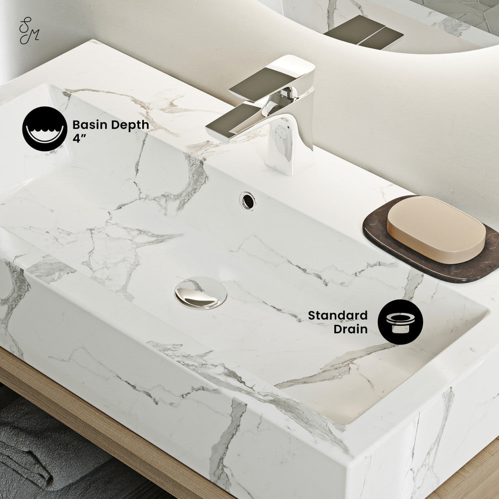 Voltaire Wide Rectangle Vessel Sink in White Marble
