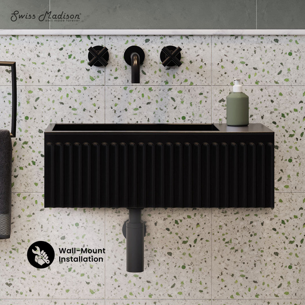 Delight in the Delice collection, where each piece indulges your senses while maintaining a contemporary and sleek aesthetic. Embrace contemporary simplicity with our wall-mount sinks, combining space-efficient design and innovative aesthetics creating a sleek and functional environment. Offered in black with a matte finish.