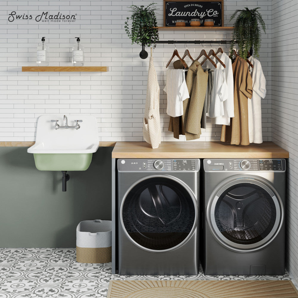 Channel the timeless elegance of the Loire Valley with this collection, where vintage themes and modern living combine. Embrace contemporary simplicity with our wall-mount sinks, combining space-efficient design and innovative aesthetics creating a sleek and functional environment. Offered in sage with a glossy finish.