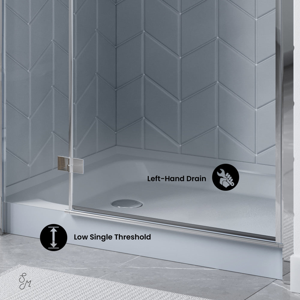 Voltaire 60" x 36" Single-Threshold, Left-Hand Drain, Shower Base in Gray