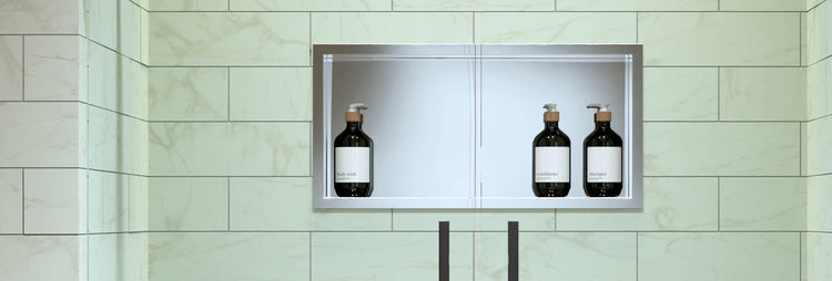 Shower niches provide built-in storage while providing a clean solution for keeping essentials organized.