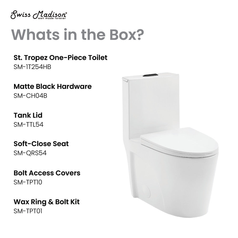 St. Tropez One Piece Elongated Toilet Dual Vortex™ Flush, Black Hardware