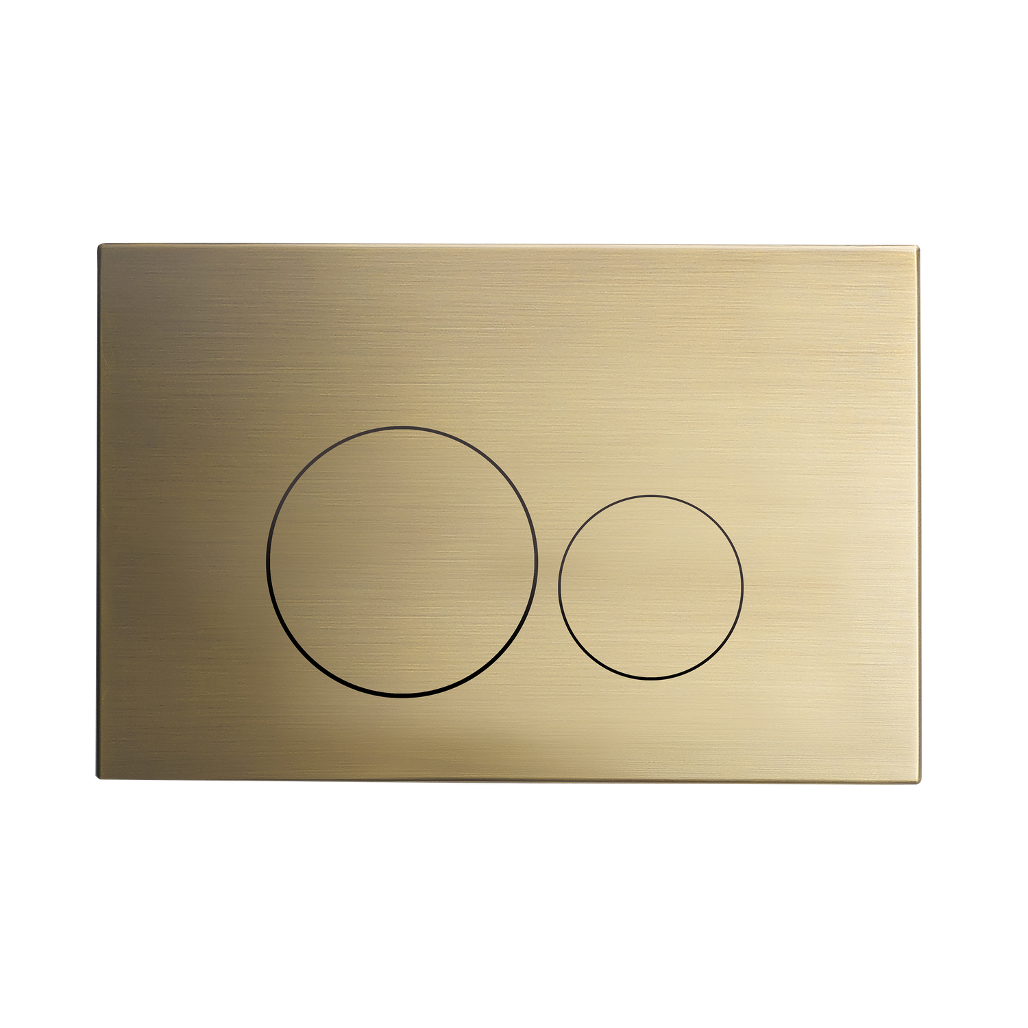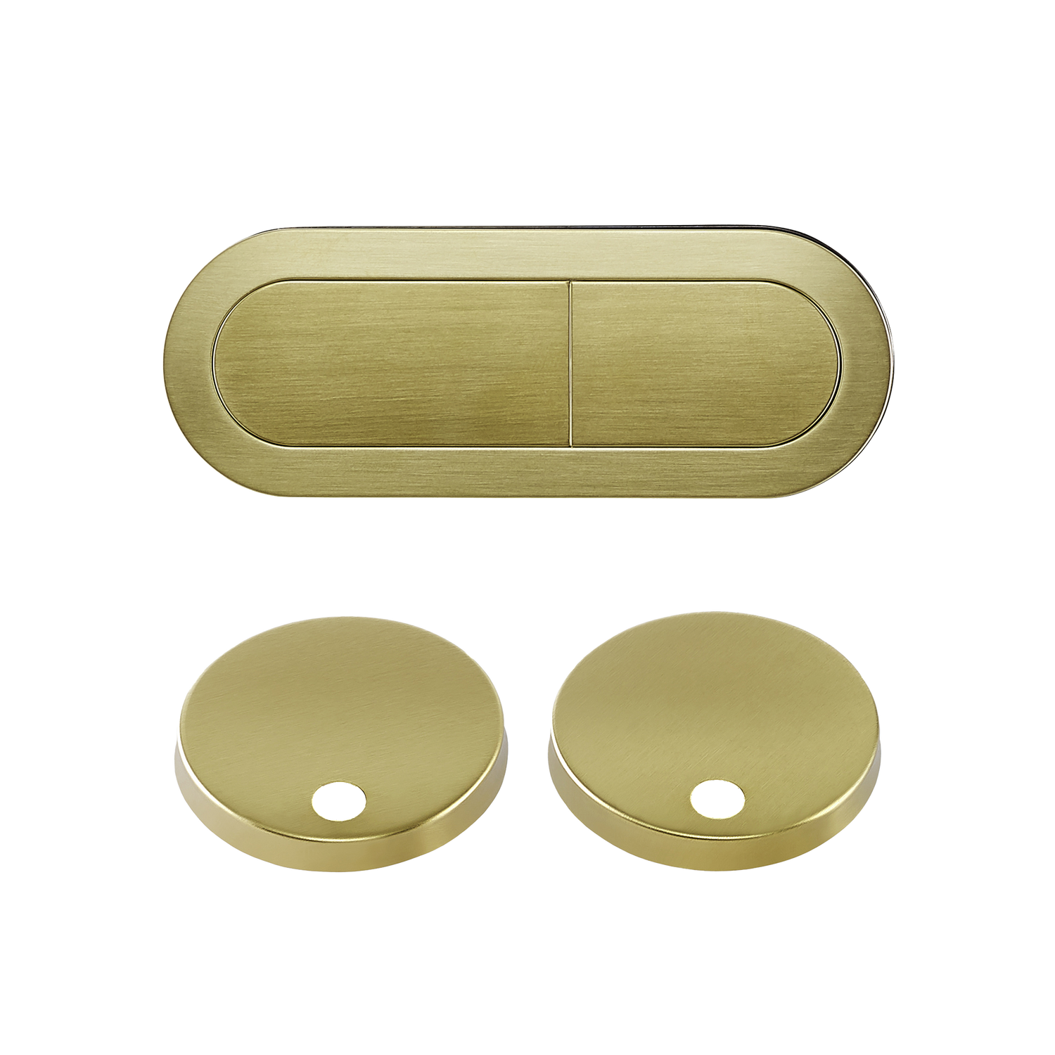 Stylish flush plates designed to operate concealed in-wall toilet tank systems.