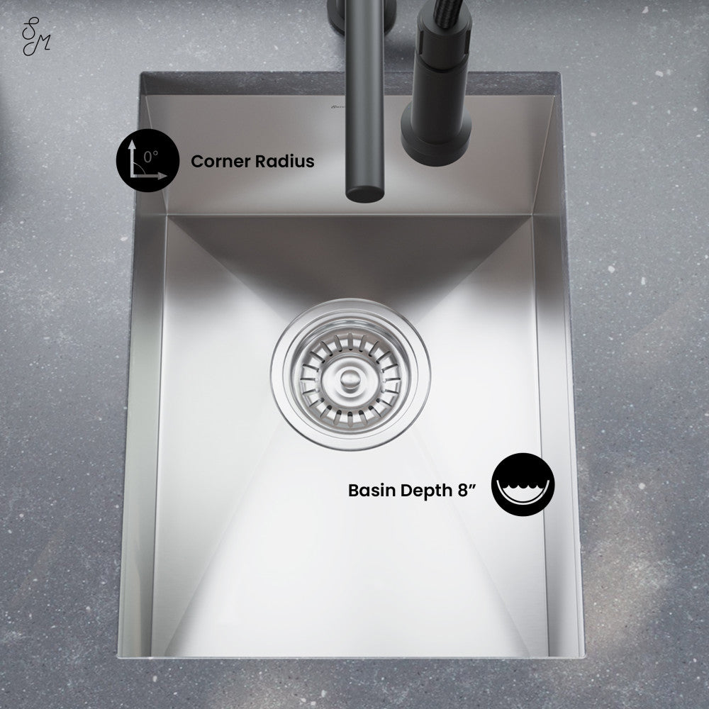 Tourner 14 x 18 Stainless Steel, Single Basin, Undermount Kitchen Sink
