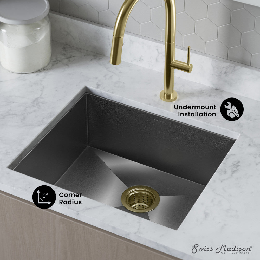 Discover the art of curves and lines with the Tourner collection, where fluid designs redefine contemporary aesthetics. Elevate your kitchen aesthetics with our undermount sinks, showcasing sleek design and maximum counter space. Offered in stainless steel with a black finish.
