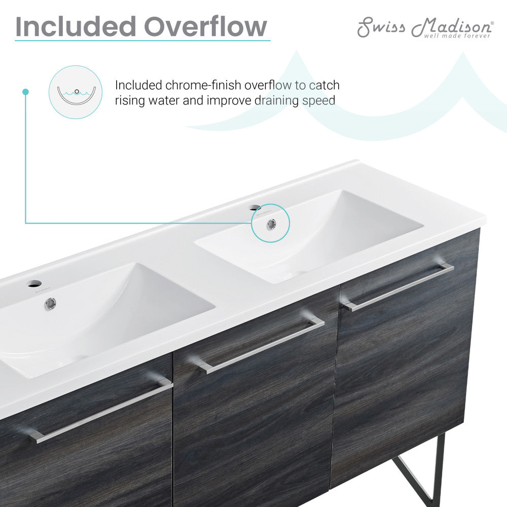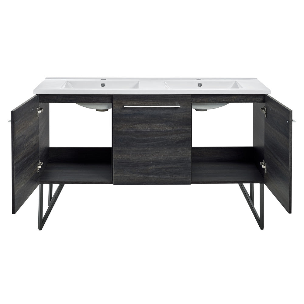 Annecy 60" Freestanding Bathroom Vanity in Black Walnut with Sink Top