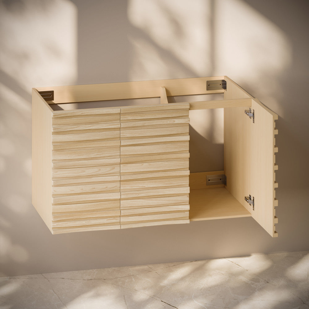 Immerse yourself in the gentle flow of design with the Cascade collection, where fluid lines and captivating forms create an atmosphere of tranquil beauty. Tailor your bathroom to perfection with our cabinets-only vanities, offering customizable vanity top solutions to integrate with your design vision. Offered in natural oak.