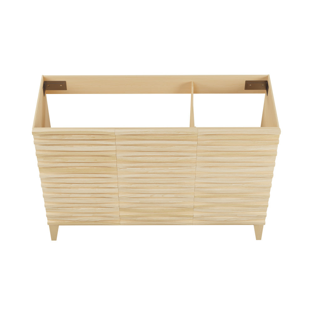 Immerse yourself in the gentle flow of design with the Cascade collection, where fluid lines and captivating forms create an atmosphere of tranquil beauty. Tailor your bathroom to perfection with our cabinets-only vanities, offering customizable vanity top solutions to integrate with your design vision. Offered in natural oak.