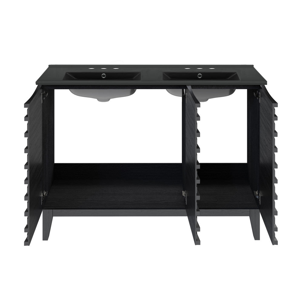 Cascade 48 in. Black Oak, Double Basin Bathroom Vanity With Black, 3-Hole Ceramic Sink Top