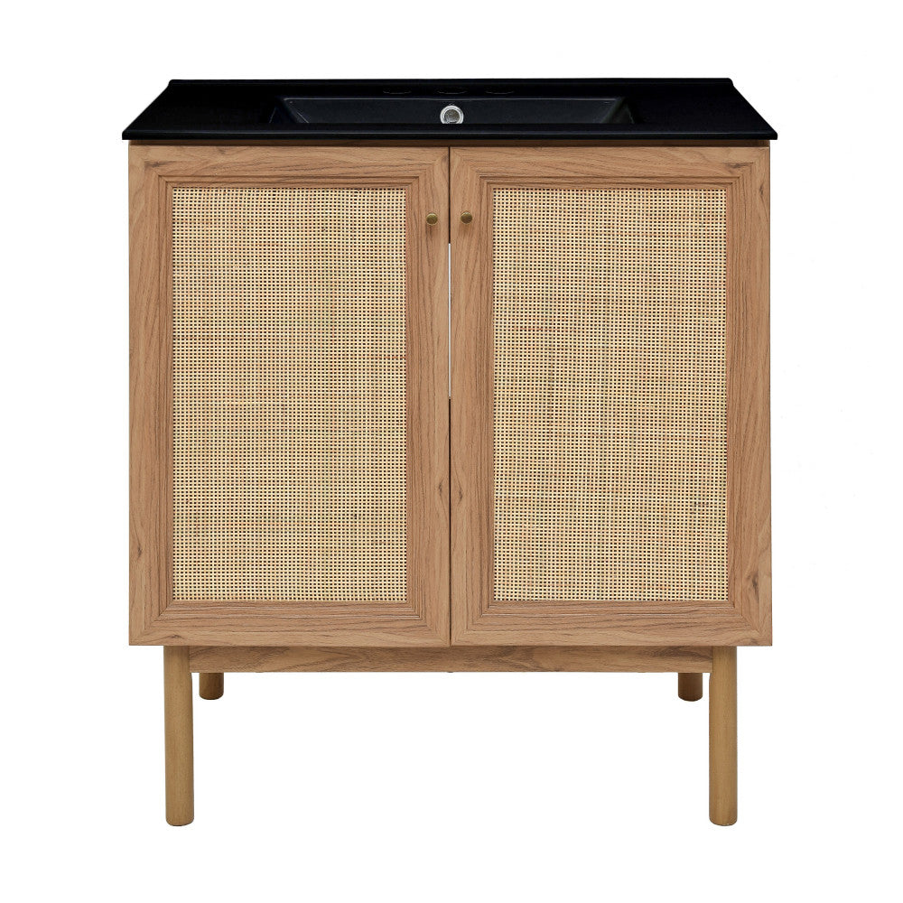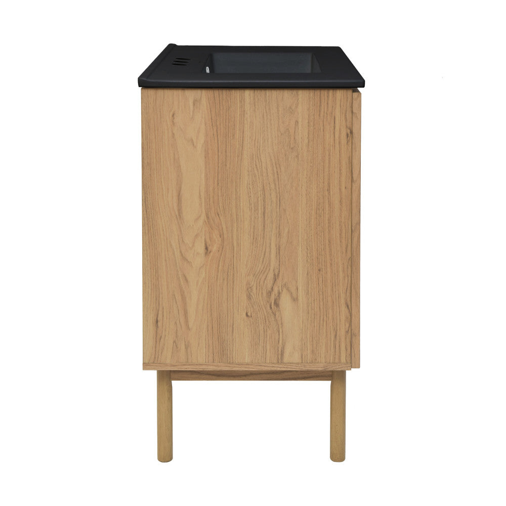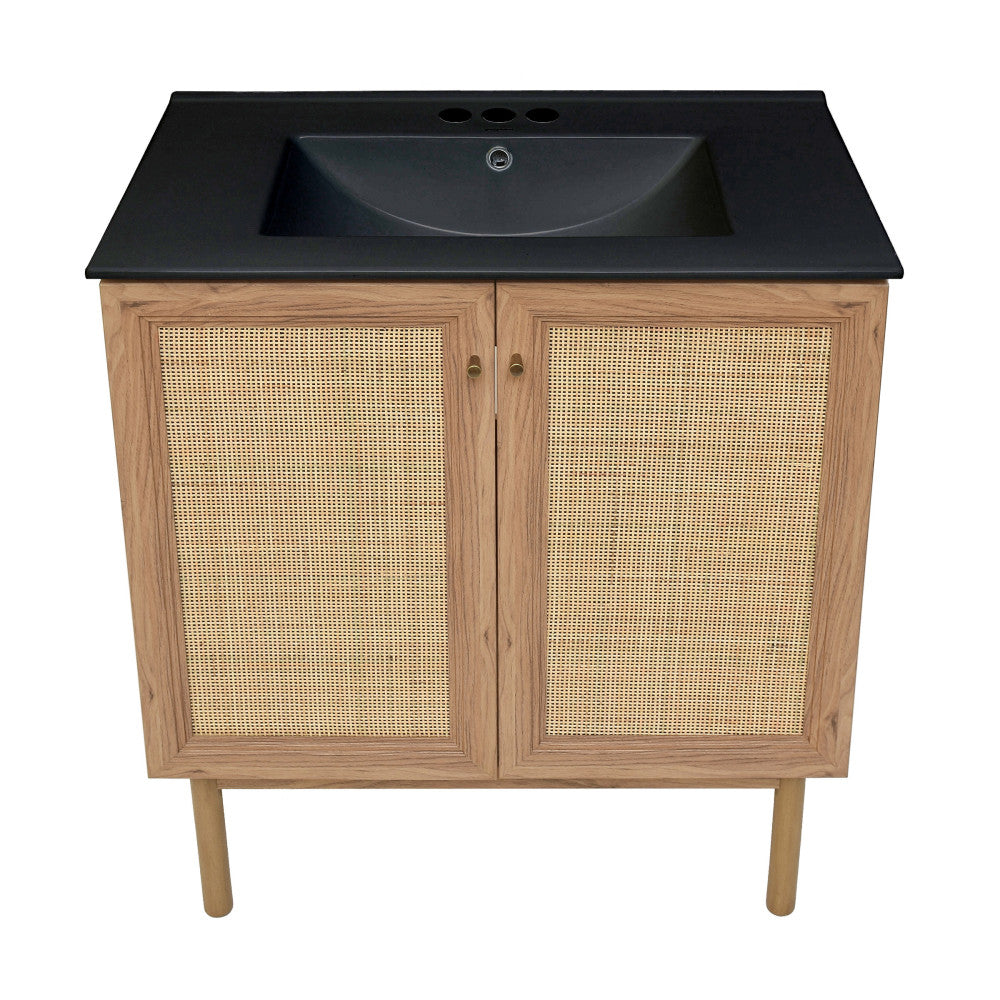 Classe 30" Freestanding Bathroom Vanity in Golden Oak with Black 3-Hole Widespread Sink Top