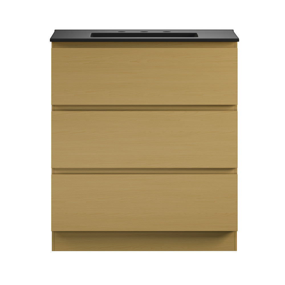 Embrace the sense of openness in the Liberte collection, where fresh designs and contemporary concepts intertwine. Transform your bathroom into a sanctuary of style and functionality with our exquisite bathroom vanities, meticulously crafted to reflect your unique taste. Offered in natural oak with a matte black sink top.