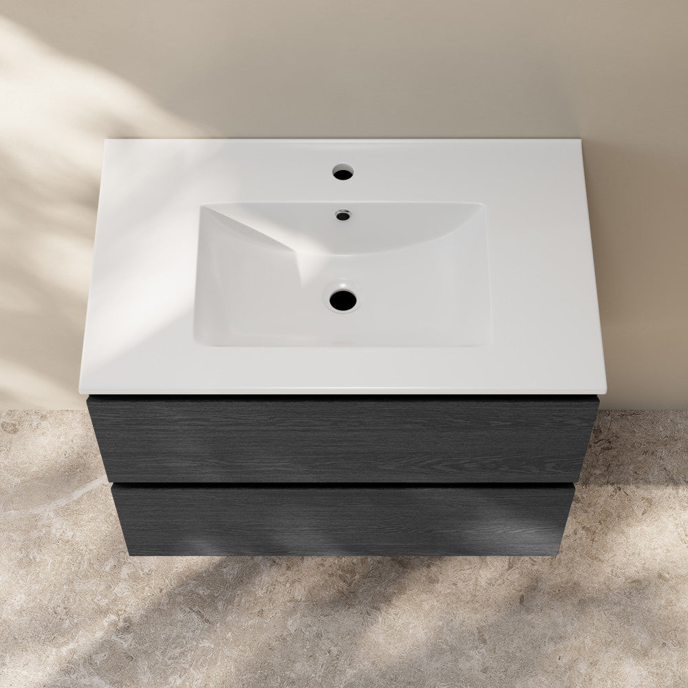 Liberte 30" Wall-Mounted Bathroom Vanity in Black Oak with Sink Top
