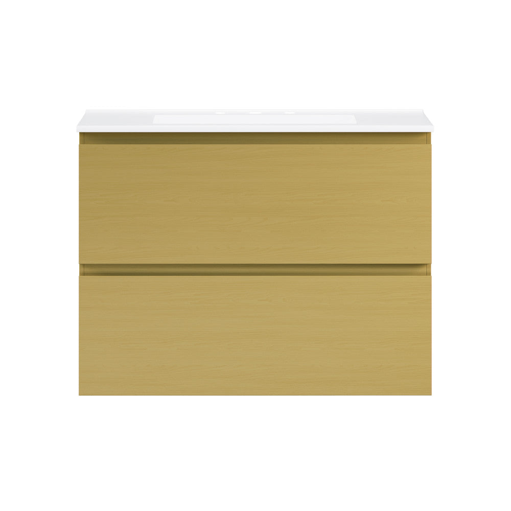 Liberte 30" Wall-Mounted Bathroom Vanity in Natural Oak with 3-Hole Widespread Sink Top