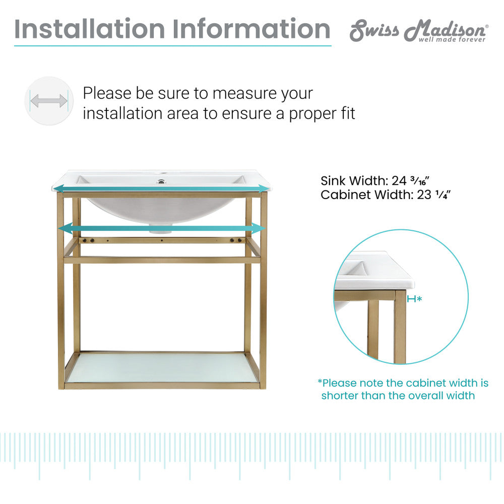 Pierre 24 Single, Open Shelf, Gold Metal Frame Bathroom Vanity