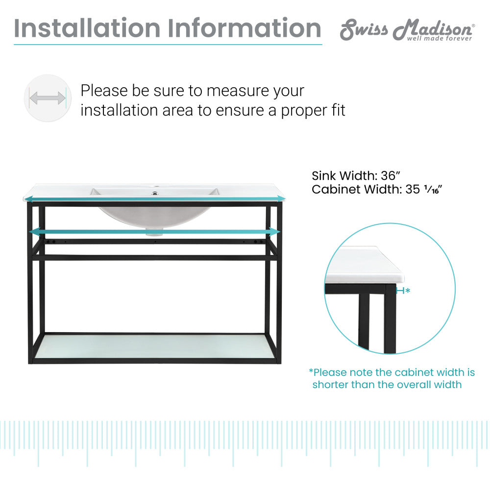 Pierre 36 Single, Metal Frame, Open Shelf, Bathroom Vanity