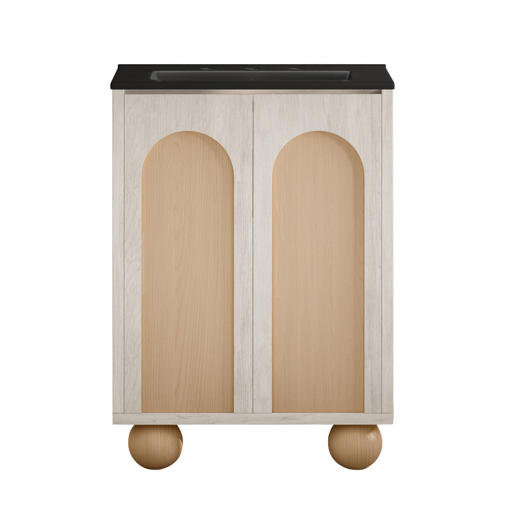 Plaisir II 24" Freestanding Bathroom Vanity in White Oak with Black 3-Hole Widespread Sink Top